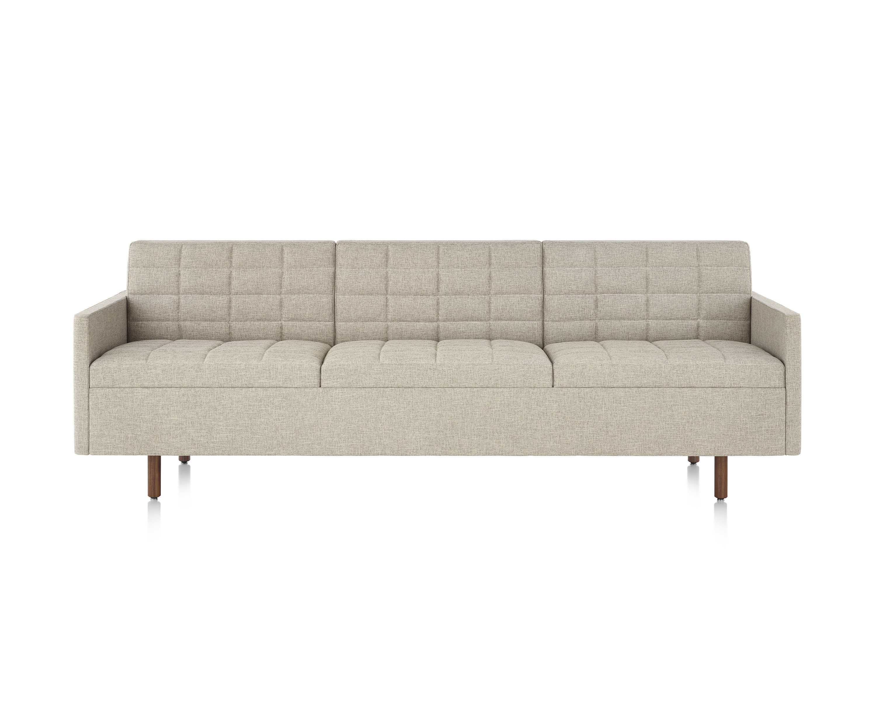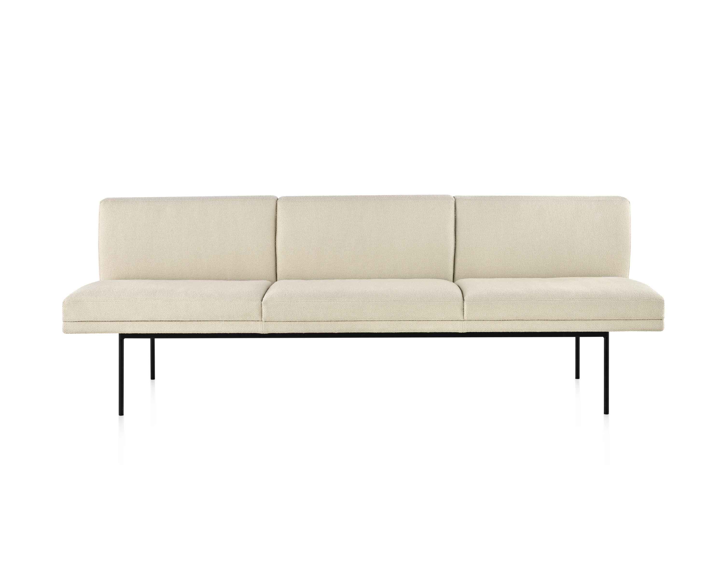 Presenta un perfil bajo y elegante gracias a la banda horizontal que forman el respaldo y los brazos (opcionales). Su apariencia es aún más liviana debido a la tapicería a medida, esmerada, que cubre los almohadones delgados de espuma de doble densidad. Cada pieza está disponible en una amplia gama de tapizados con o sin acolchado.