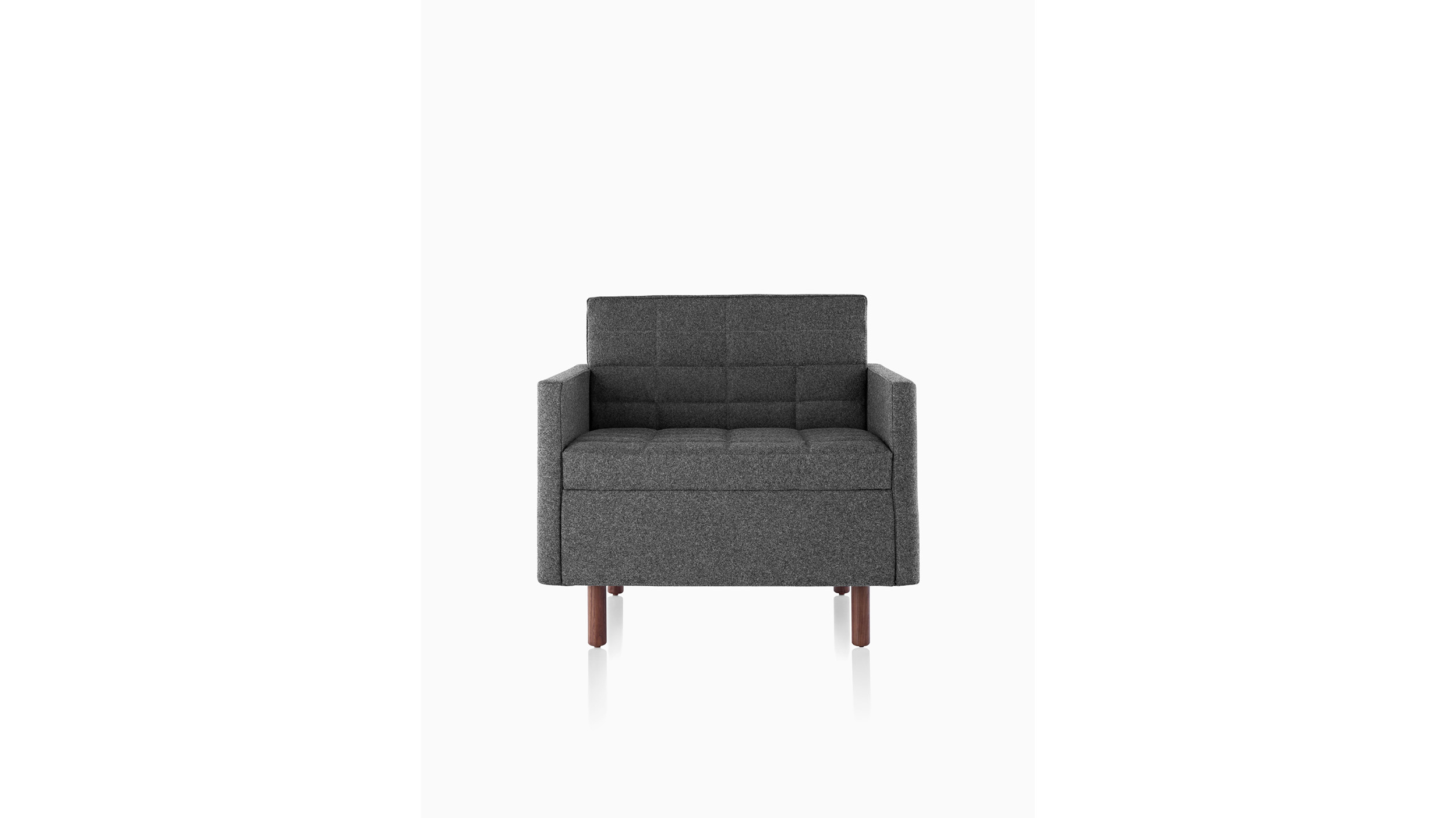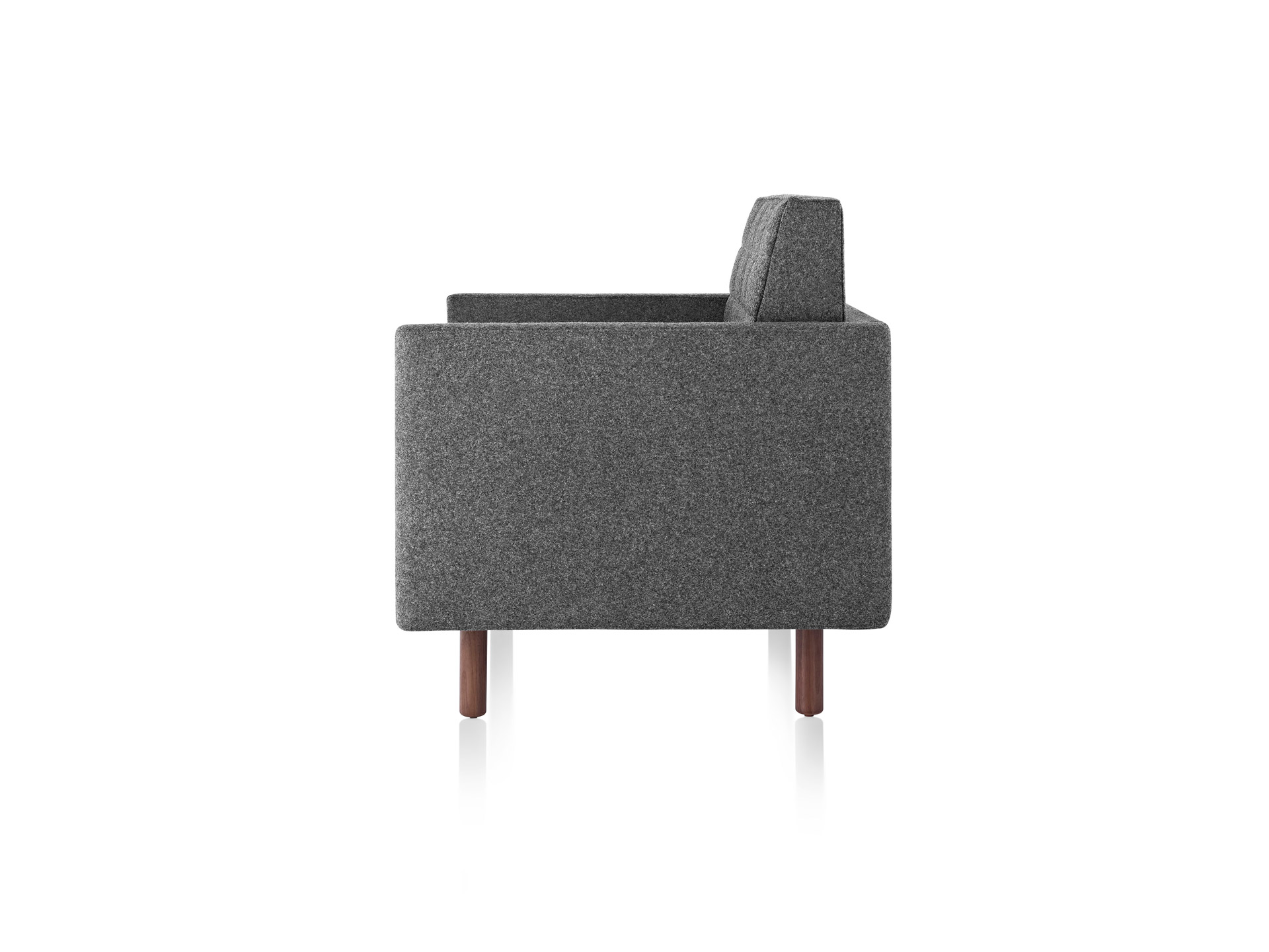 Presenta un perfil bajo y elegante gracias a la banda horizontal que forman el respaldo y los brazos (opcionales). Su apariencia es aún más liviana debido a la tapicería a medida, esmerada, que cubre los almohadones delgados de espuma de doble densidad. Cada pieza está disponible en una amplia gama de tapizados con o sin acolchado.